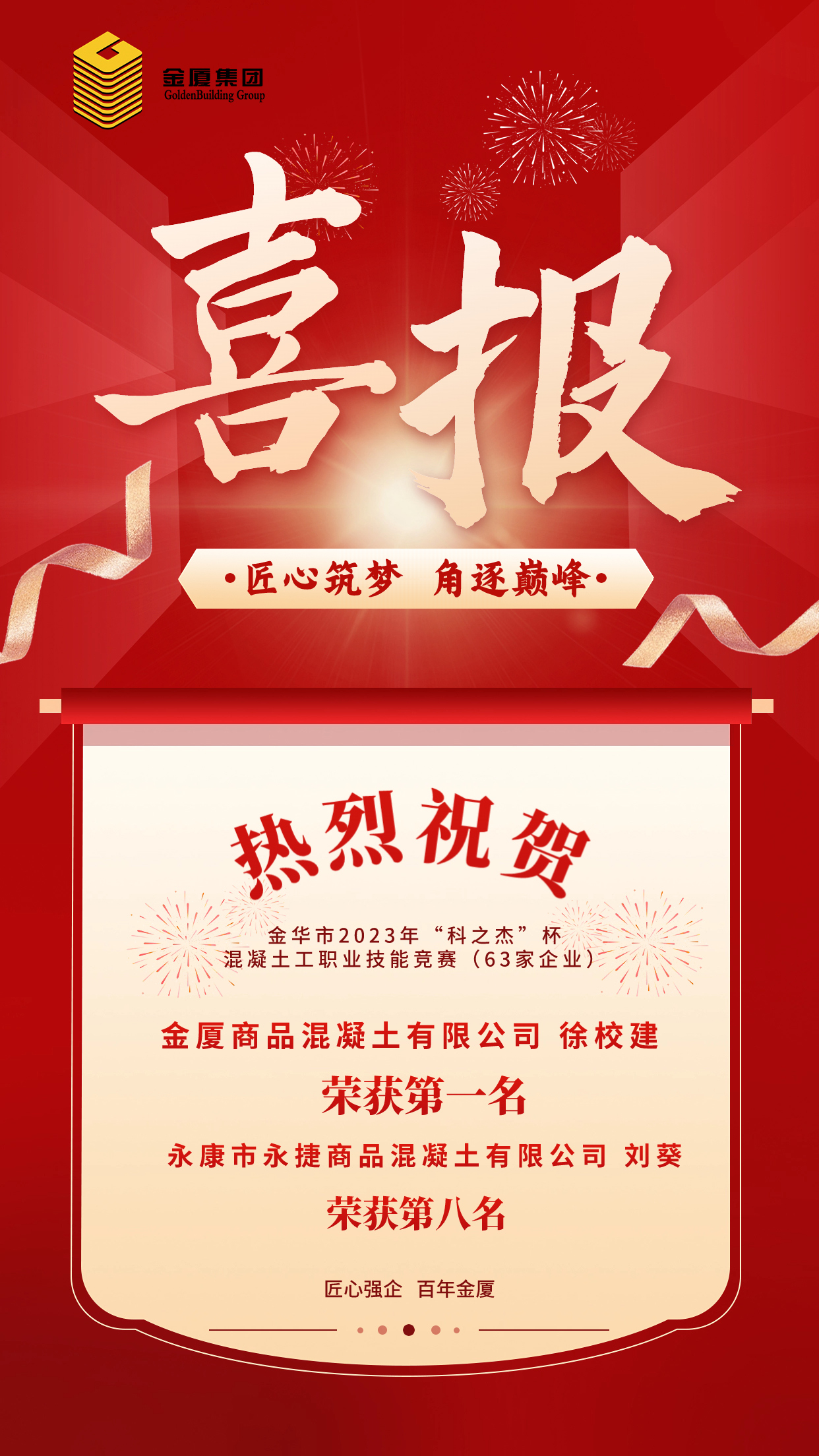 喜報(bào)!金廈集團(tuán)徐校建勇奪金華市混凝土工職業(yè)技能競(jìng)賽第一名!
