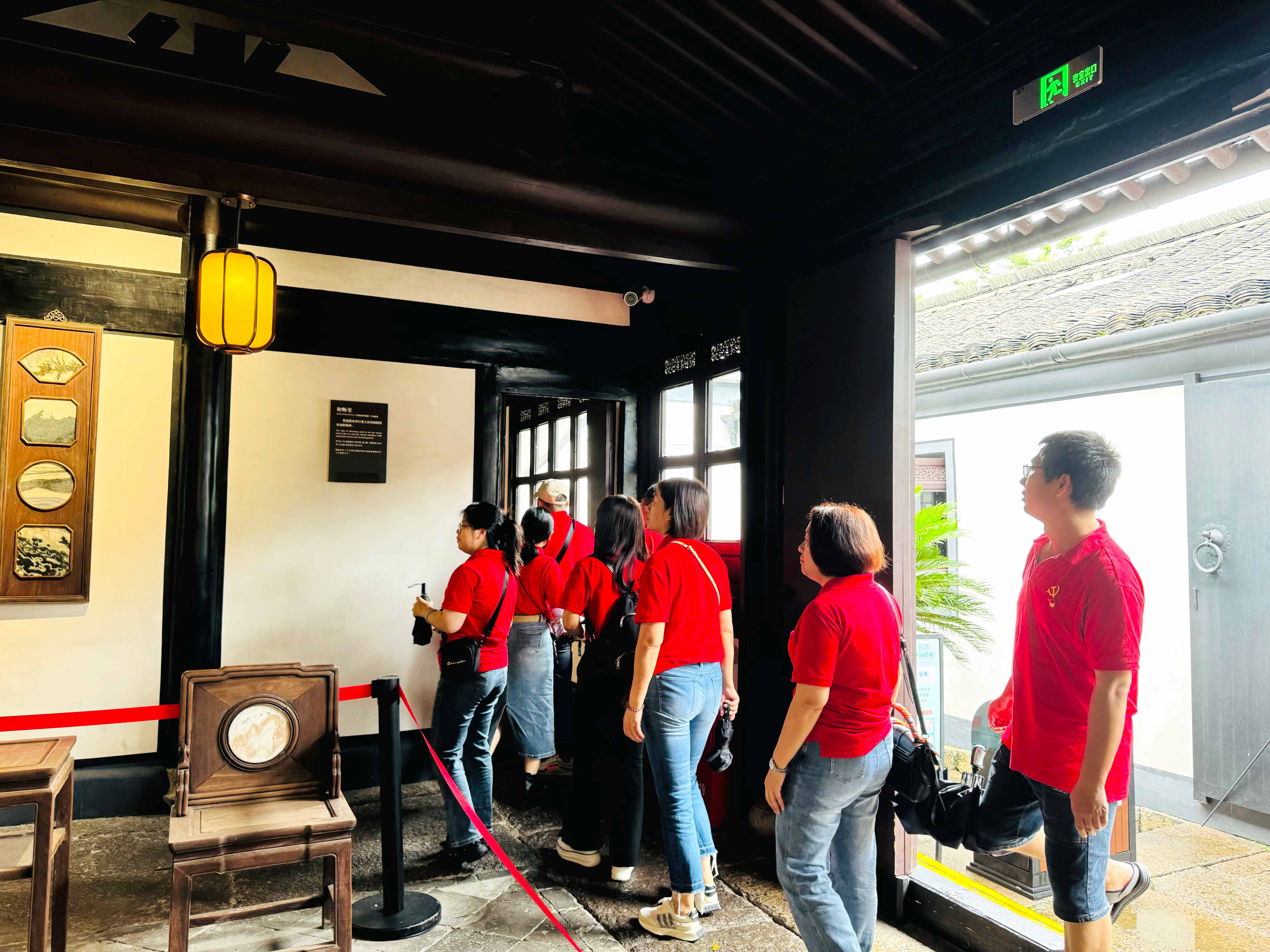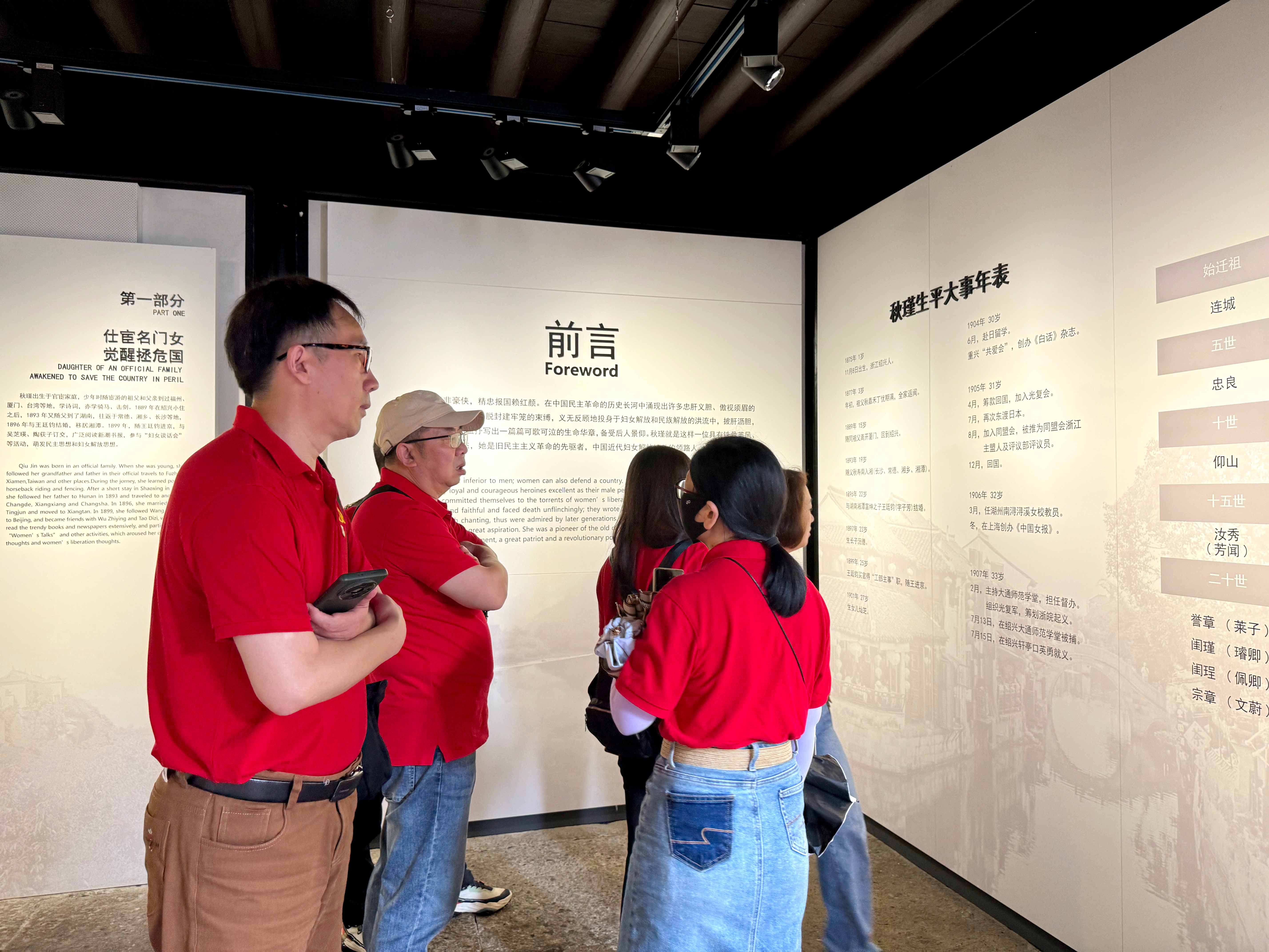 金廈團(tuán)隊(duì)一路奔赴,抵達(dá)紹興后第一時(shí)間來到了位于越城區(qū)的秋瑾故居。這是一座充滿歷史沉淀的古樸建筑,這里曾經(jīng)是秋瑾出生成長的地方,也是她投身革命事業(yè)的起點(diǎn)。故居內(nèi)陳列著大量關(guān)于秋瑾從事革命事業(yè)的圖片和文獻(xiàn)資料,大家認(rèn)真參觀展館,在歷史的回聲中感受秋瑾這位偉大女性短暫而輝煌的人生軌跡。